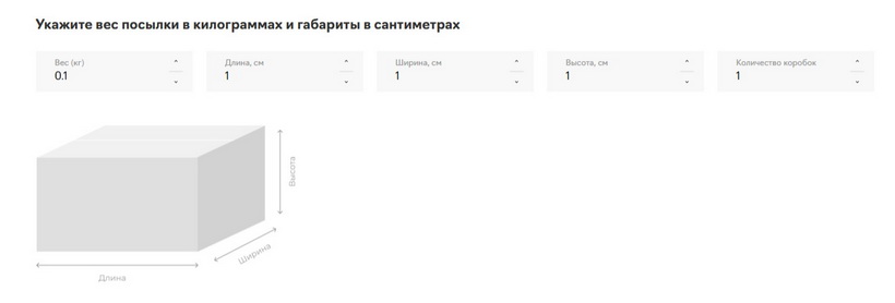 Чтобы получить тарифы на доставку посылки, в разделе «Что вы отправляете?» выберите «Посылка». В поле «Вес (кг)» впишите реальный вес посылки. Если не знаете точно — взвесьте на бытовых весах или укажите приблизительно. Далее введите размеры коробки в сантиметрах в соответствующие поля.