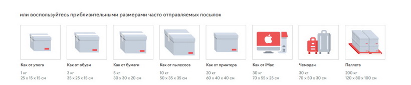 Нажмите тот вариант, который больше всего похож на вашу посылку — размеры и вес подставятся автоматически.