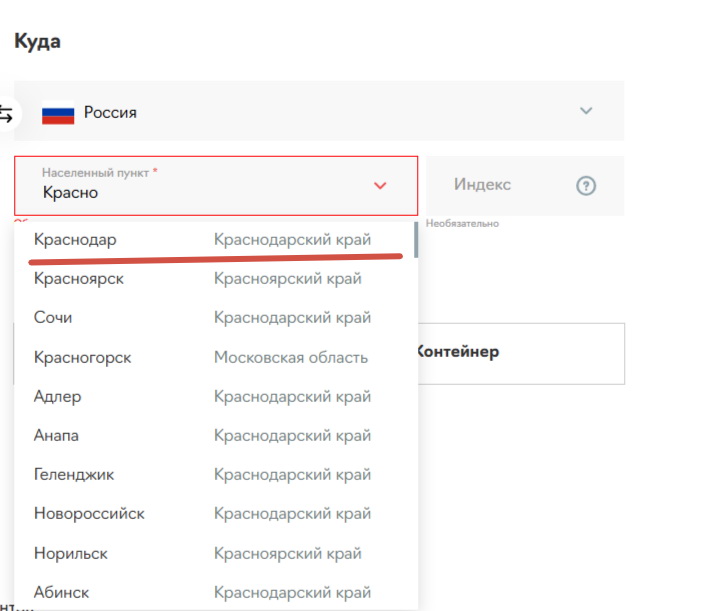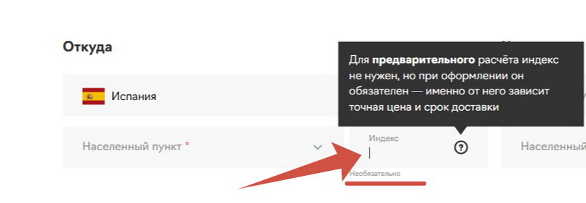Индекс. Для предварительного расчета указывать не нужно, но при оформлении международной доставки индекс обязателен, потому что разные районы одного города могут относиться к разным тарифным зонам. Показатель влияет на стоимость и сроки в небольших городах численностью до 100 000 жителей и для населенных пунктов, которые находятся дальше 100 км от крупных городов. Менеджер запросит индекс только при оформлении или точном расчете, если город удаленный или малочисленный. Без индекса невозможно подтвердить точную цену и срок доставки.